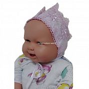 "МоёДитё" чепчик с гипюром нарядный белый с розовым Т196 "Вербена"