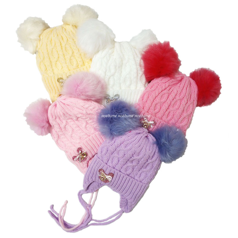 В упаковке 5 штук одного размера и вида, разного цвета. Шапочка вязаная с завязками, с помпончиком из меха, на подкладке из велсофта. Очень тёплая. Размер шапочек на 3-5 лет.